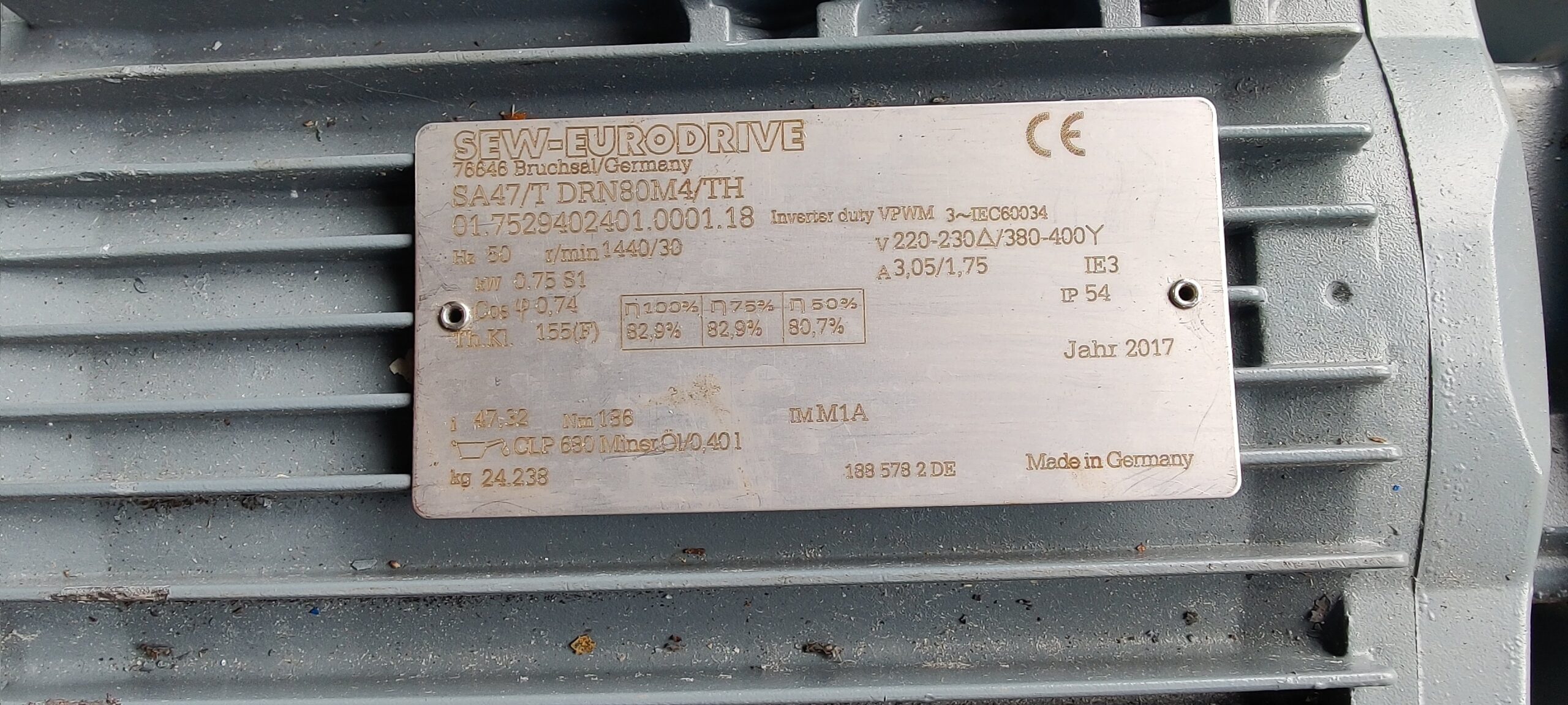 Motor electric cu reductor SEW 0.75kW 30rpm